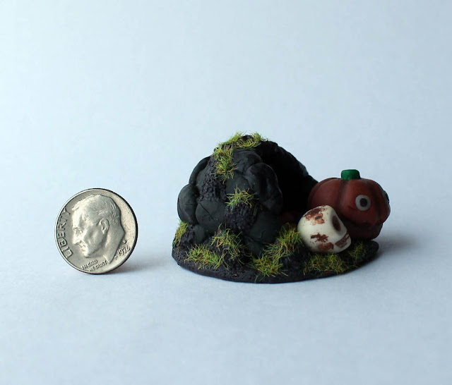 This miniature - Halloween Cave stash of candy - is a one of a kind original design, work of my son artist Roman Moiseenko. It is completely hand made from mixed media, hand sculpted from polymer clay and hand decorated.